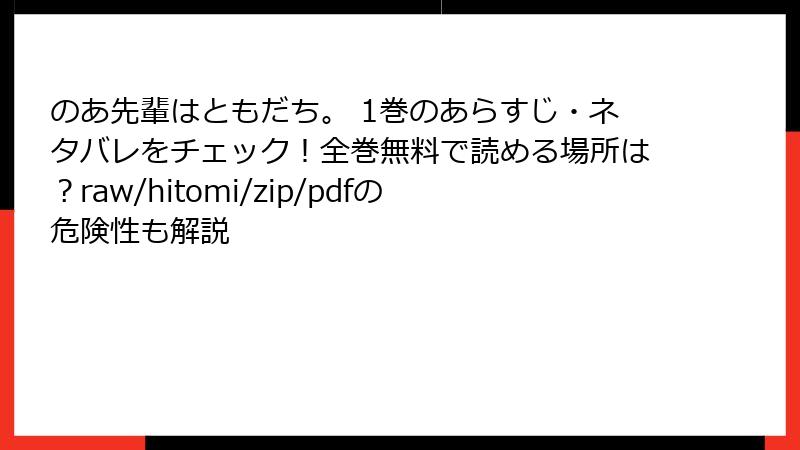 「のあ先輩はともだち。」最新巻が待ちきれなくて、つい「raw」「hitomi」「nhentai」「漫画バンク」「マンガraw」などで検索してしまう…気持ちは痛いほど分かります。でもその一クリックが、あなたのスマホ・PC・銀行口座・そして作者の未来を破壊しかねないんです。本記事では具体的なリスクをガッツリ解説します。