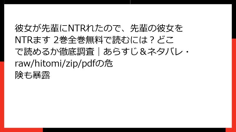 『彼女が先輩にNTRれたので、先輩の彼女をNTRます』をraw・hitomi・漫画バンクなどで読むとヤバい理由