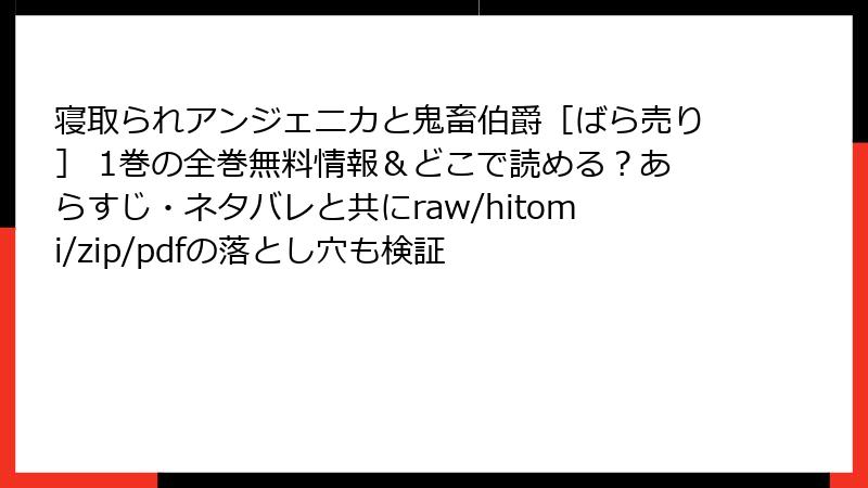 ![寝取られアンジェニカと鬼畜伯爵[ばら売り] 1巻:海賊版サイトで読むなんて絶対NG! 深刻なリスクを徹底解説](https://sarakimt.co.jp/manga/wp-content/uploads/2025/11/article_20251111_064128_598.jpg)