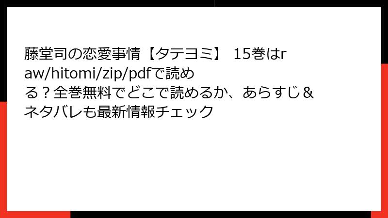 こんにちは、電子書籍ハンターのブロガーです! 韓国発の大人気タテヨミ漫画『藤堂司の恋愛事情【タテヨミ】』。不器用エリート司と野心家秘書・由紀のオフィスロマンスにハマってるあなた、電子版で最新15巻をサクッと読みたいですよね? 2025年11月11日時点の最新情報として、指定されたサービス(コミックシーモア、BookLive、まんが王国、ebookjapan、Renta!、めちゃコミック、ピッコマ、LINEマンガ)でどこまで配信中か、無料お試しや割引のコツを詳しくまとめました。LINEマンガが本命配信元なので、そこを中心に周辺サービスもチェック。ネタバレなしで読み進めやすいように、巻数・価格目安・特典をテーブルで整理。さあ、司の恋の行方を追う旅に出発しましょう!