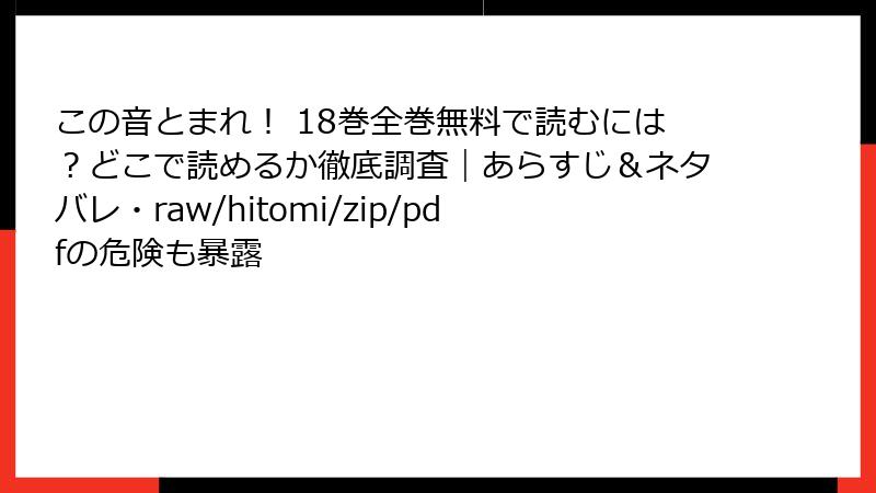 こんにちは、マンガファン歴20年のブログ管理人です。今日は『この音とまれ!』のような大好きな作品を、raw / hitomi / zip / pdf / 漫画バンクなどの海賊版サイトで読むことの「リアルなリスク」を、ガッツリ掘り下げます。無料で読めるのは魅力的ですが、その裏には取り返しのつかない代償が潜んでいます。18巻の感動を味わいたいなら、正規ルート一択! 以下で、法的・セキュリティ・倫理的な観点から、具体例を交えて解説します。