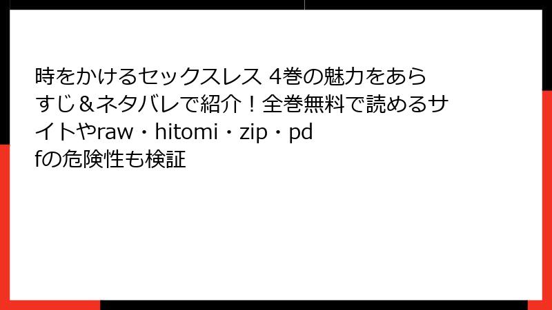 こんにちは、深夜に漫画を読み漁るブロガーです。今回はリクエストにお応えして、『時をかけるセックスレス』第4巻の完全ネタバレをお届け! 前回のあらすじ記事を読んで「もっと核心を!」という声が多かったので、今回は伏線回収の鍵となる「秘密の箱」、タイムリープの副作用、そして雄太の心理まで、容赦なく深掘りします。未読の方は絶対に読み進まないでくださいね。ブログ形式で、章ごとの展開+裏設定+読者考察まで、読み応えマックスで構成しました。さあ、覚悟はいいですか?