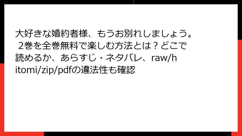 大好きな婚約者様、もうお別れしましょう。 2巻を全巻無料で楽しむ方法とは?どこで読めるか、あらすじ・ネタバレ、raw/hitomi/zip/pdfの違法性も確認