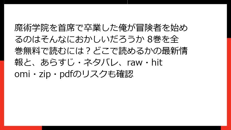 こんにちは、漫画愛好家のブロガーです! 今回は人気急上昇中の「魔術学院を首席で卒業した俺が冒険者を始めるのはそんなにおかしいだろうか」(以下、魔術学院)を例に、海賊版サイト(raw、hitomi、zip、pdf、漫画バンクなど)で読むことの深刻なリスクをガチで掘り下げます。