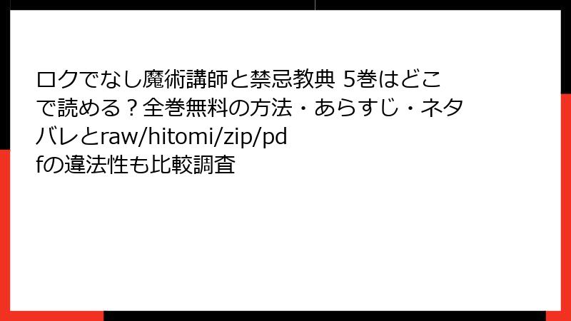 3. 『ロクでなし魔術講師と禁忌教典』をraw/hitomi/zip/pdf/漫画バンクで読むリスク:海賊版が招く5つの地獄