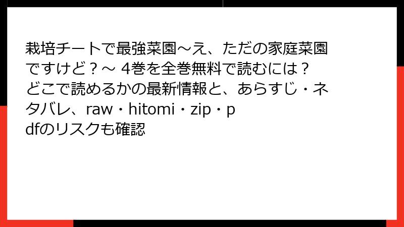 『栽培チートで最強菜園』4巻をraw・hitomi・zip・pdf・漫画バンクで読むとヤバい! 海賊版のリアルなリスクを徹底警告