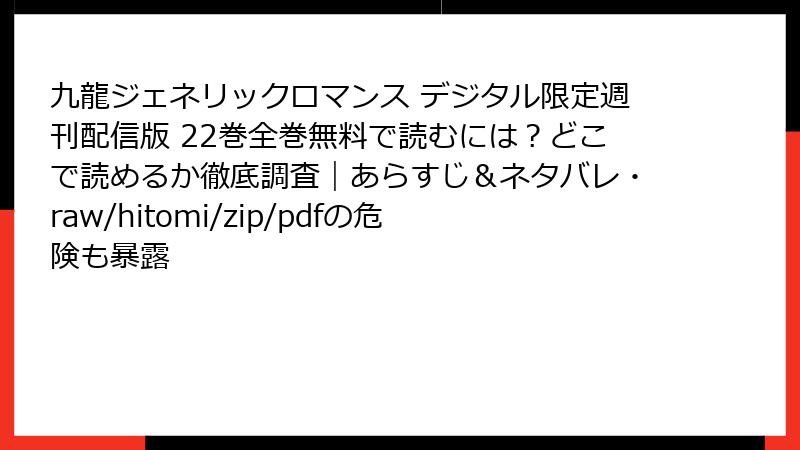こんにちは、著作権とネットセキュリティをこよなく愛するブロガー「九龍ガーディアン」です。眉月じゅん先生の傑作『九龍ジェネリックロマンス』を、つい「無料で一気読みしたい!」と海賊版サイトに手を伸ばしそうになったことはありませんか? raw、hitomi、zip、pdf、漫画バンク……甘い誘惑の裏には、想像以上の罠が潜んでいます。今回は、22巻最新話のネタバレを我慢してでも、正規ルートで読むべき理由を、5つの深刻なリスクに分けて徹底解説します。あなたのスマホ・PC、そして財布と心を守るために、最後までお付き合いください。