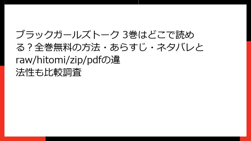 『ブラックガールズトーク』3巻、めっちゃスカッとしたいですよね。でも「raw」「hitomi」「漫画バンク」「zip」「pdf」などの海賊版サイトで無料で読もうとすると…実は**命取り**になるリスクが山盛り。今回は「違法アップロードの闇」を徹底解剖。法的・金銭的・精神的・健康的なダメージを、具体例付きで丸裸にします。読む前に知っておけば、**一生後悔しない**選択ができるはず。ネタバレなしで、リスクだけをガチで深掘り!