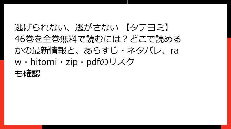 ※この記事は『逃げられない、逃がさない』46巻の**完全ネタバレ**を含みます。未読の方は絶対に読み進めないでください。すでに読破済みで「もう一度あの衝撃を味わいたい」「細部まで振り返りたい」という猛者のみ、どうぞお進みください。今回は、**1ページごとの展開**、**伏線回収**、**キャラクターの真実**、**次巻への布石**まで、容赦なく暴いていきます。覚悟はいいですか?
