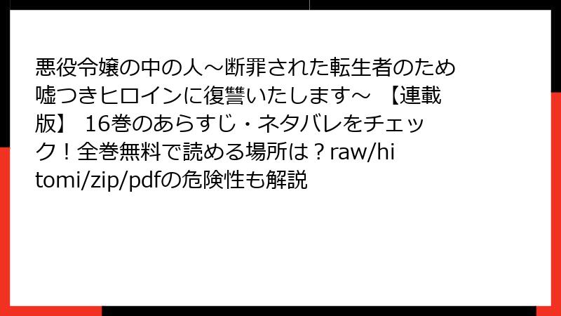 悪役令嬢の中の人~断罪された転生者のため嘘つきヒロインに復讐いたします~ 【連載版】 16巻のあらすじ・ネタバレをチェック!全巻無料で読める場所は?raw/hitomi/zip/pdfの危険性も解説