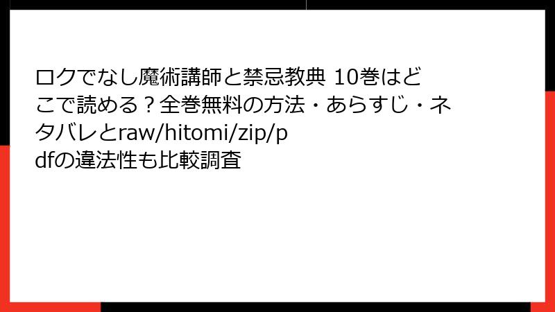『ロクでなし魔術講師と禁忌教典』をraw/hitomi/zip/pdf/漫画バンクなどの海賊版サイトで読むリスク──絶対に手を出してはいけない理由