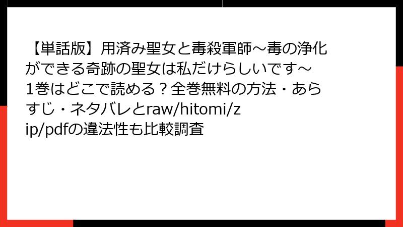 【単話版】用済み聖女と毒殺軍師~毒の浄化ができる奇跡の聖女は私だけらしいです~ 1巻はどこで読める?全巻無料の方法・あらすじ・ネタバレとraw/hitomi/zip/pdfの違法性も比較調査