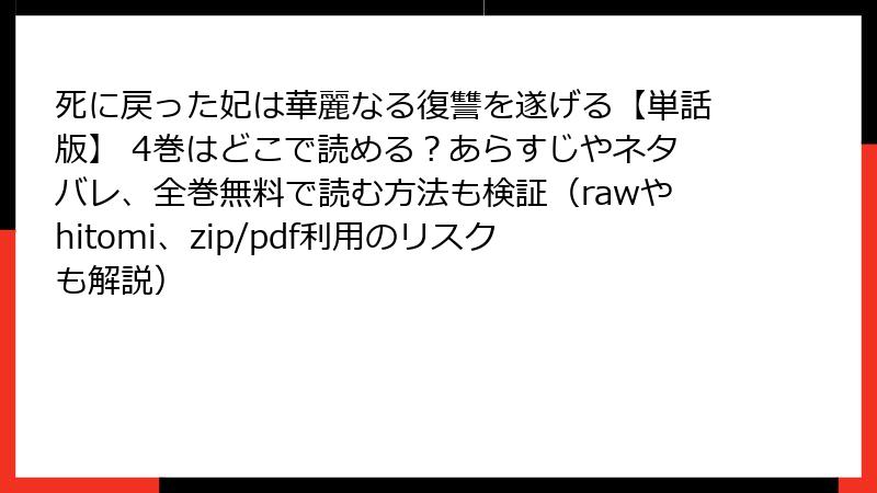 『死に戻った妃は華麗なる復讐を遂げる』をraw・hitomi・zip・pdf・漫画バンクで読むリスク全暴露:復讐の代償はあなたにも降りかかる