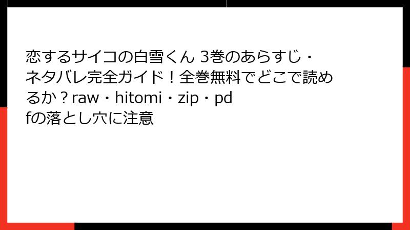 3. 『恋するサイコの白雪くん』をraw/hitomi/zip/pdf/漫画バンクで読むリスク:海賊版が招く7つの地獄