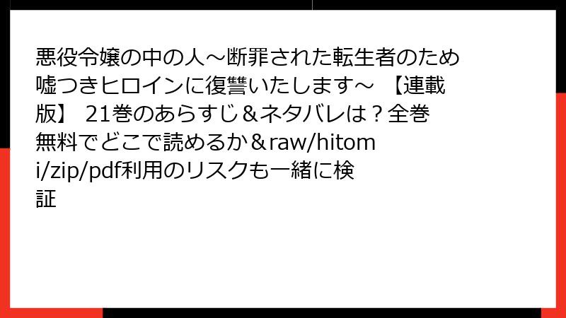 悪役令嬢の中の人~断罪された転生者のため嘘つきヒロインに復讐いたします~ 【連載版】 21巻のあらすじ&ネタバレは?全巻無料でどこで読めるか&raw/hitomi/zip/pdf利用のリスクも一緒に検証