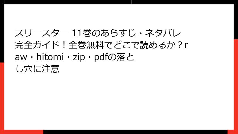 スリースター 11巻のあらすじ・ネタバレ完全ガイド!全巻無料でどこで読めるか?raw・hitomi・zip・pdfの落とし穴に注意