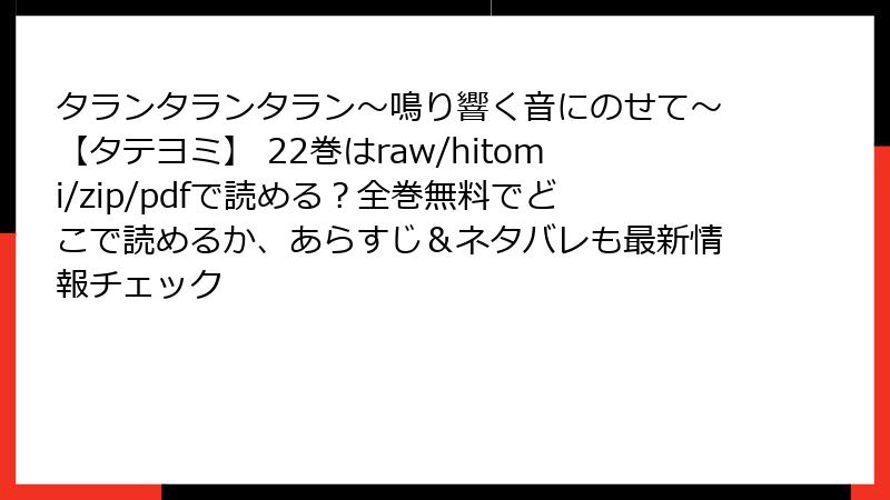 「タランタランタラン~鳴り響く音にのせて~」は、めちゃコミック中心に多サービスで読める柔軟さが魅力。無料から始め、クーポンで深掘りするのがおすすめルートです。非配信サービスも他の韓国ロマンスで穴埋めを! 皆さんはどのサービスから? コメントでシェアしてくださいね。次回は最新話考察をお届け予定。鐘の音に導かれて、素敵な読書を♪