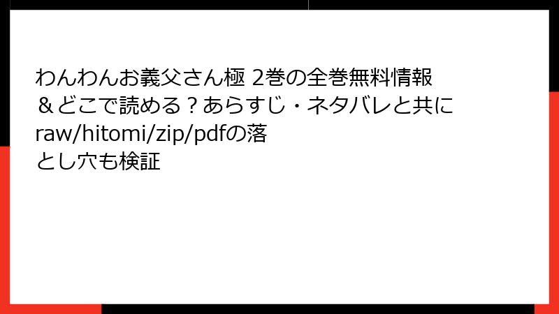 ドMの『わんわんお義父さん極』2巻は過激注意で、コミックシーモアで調教を、Renta!で復讐をレンタル。めちゃコミックの無料で極みを、まんが王国の還元で歪みを。ブックライブのUIで家族を、ピッコマ未配信ですが代替で。
