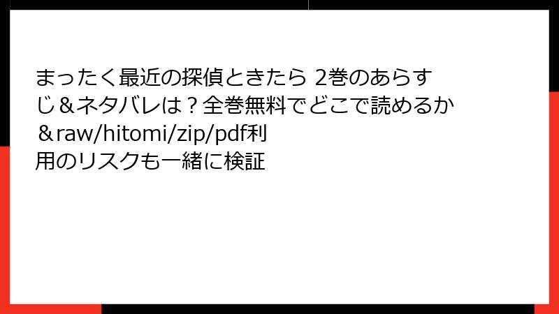 大人気コメディミステリー『まったく最近の探偵ときたら』。名雲探偵のズレまくり推理にハマって、つい「今すぐ続きが読みたい!」と思う気持ちはわかります。でも、raw、hitomi、漫画バンク、zip、pdfなどの海賊版サイトに手を出す前に、ちょっと待ってください。無料の裏には、想像以上の危険が潜んでいます。この記事では、法的・セキュリティ・倫理的な観点から、リスクを徹底的に掘り下げます。安全に楽しむための正しい選択を、一緒に考えましょう。