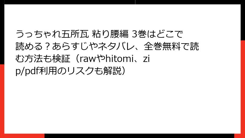 『うっちゃれ五所瓦 粘り腰編』を海賊版サイト(raw/hitomi/zip/pdf/漫画バンク等)で読む本当のリスク:法的・セキュリティ・倫理の三重苦