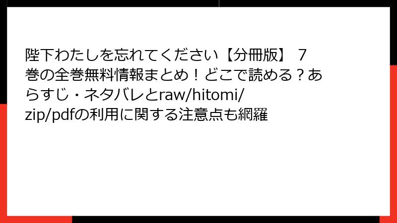 みなさん、こんにちは! 漫画愛好家のあかりです。今日は、大人気ファンタジーロマンス『陛下わたしを忘れてください【分冊版】』を題材に、raw、hitomi、zip、pdf、漫画バンクなどの海賊版サイトで読むことの深刻なリスクを徹底解説します。この作品はピッコマなどで公式配信されているのに、海賊版に手が伸びそうになる気持ち、わからなくはないけど…絶対にダメ! 法的・セキュリティ・倫理的な観点から、読み応え満載でリスクを深掘り。未然に防いで、安心して公式で楽しもう♪