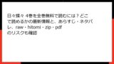 • 注意点: 海賊版(raw/zip/pdf)はウイルス・法的リスク大。正規で作者応援を!