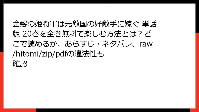 金髪の姫将軍は元敵国の好敵手に嫁ぐ 単話版 20巻を全巻無料で楽しむ方法とは?どこで読めるか、あらすじ・ネタバレ、raw/hitomi/zip/pdfの違法性も確認