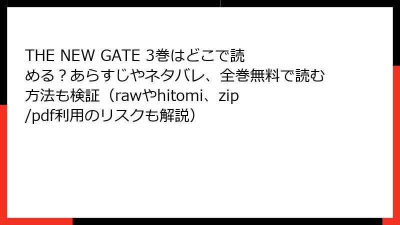 大人気異世界ファンタジー『THE NEW GATE』のコミカライズ版、最新巻まで一気読みしたくなる気持ちはわかります! しかし、rawサイトやhitomi、zip/pdfダウンロード、漫画バンクなどの海賊版プラットフォームを利用するのは、想像以上の危険が潜んでいます。無料で読める誘惑に負けて、後悔する読者が後を絶ちません。本記事では、法的・セキュリティ・倫理的な観点から、リスクを徹底解説。安全に楽しむための正しい選択肢もご紹介します。未成年の方も、保護者の方も、必読です!