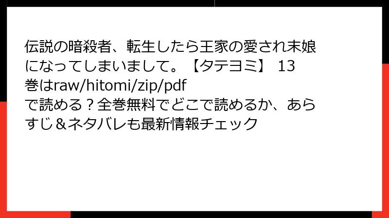 - 『伝説の暗殺者、転生したら王家の愛され末娘になってしまいまして。』をraw/hitomi/zip/pdf/漫画バンクなどの海賊版サイトで読むリスク大公開