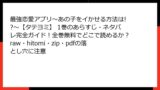 黒影のジャンクの熱いバトルを、心から楽しむなら正規ルート一択。海賊版サイトは、法的・セキュリティ・倫理の三重苦。摘発、デバイス故障、個人情報流出のリスクは、無料の代償として高すぎます。次巻の決勝戦を、クリーンな環境で迎えましょう! 皆さんの漫画ライフが、安全で充実したものになりますように。このブログでは、今後も合法推奨の漫画レビューをお届けします。コメントで「正規派!」と宣言してくれたら嬉しいです!