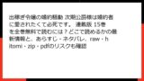 注意:配信状況は変動するので、各アプリで検索を。クーポン活用で数百円で済むけど、海賊版は避けて正規で応援を♪ 次回は「お得クーポン活用術」記事かも? コメントで「どのサービス派?」教えてくださいね!