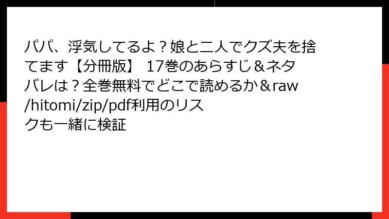 「パパ、浮気してるよ?娘と二人でクズ夫を捨てます【分冊版】 17巻」あらすじ徹底解説!母娘の絆と裏切りが交錯する感動の1冊