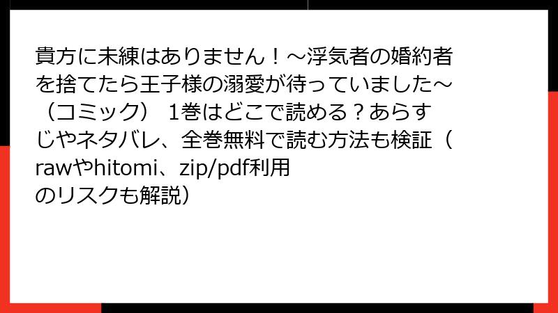 - 『貴方に未練はありません!』をraw・hitomi・nhentai・漫画バンクなどで読むと何が起こる? 海賊版サイトのリアルなリスクを徹底解説