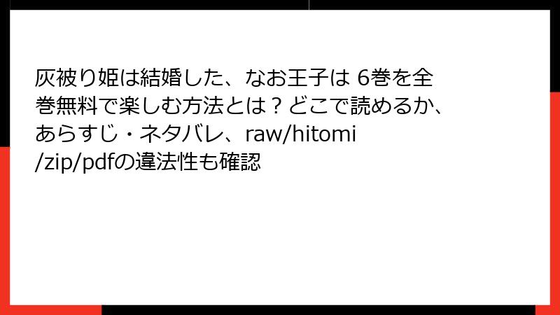 大好きな『灰被り姫は結婚した、なお王子は』を「どうしても無料で今すぐ読みたい!」という気持ち、すごくわかります。でも、raw、hitomi.la、漫画バンク、漫画村クローン、zip・pdf配布サイトといった海賊版サイトを利用すると、実はとんでもないリスクが待ち受けているんです。