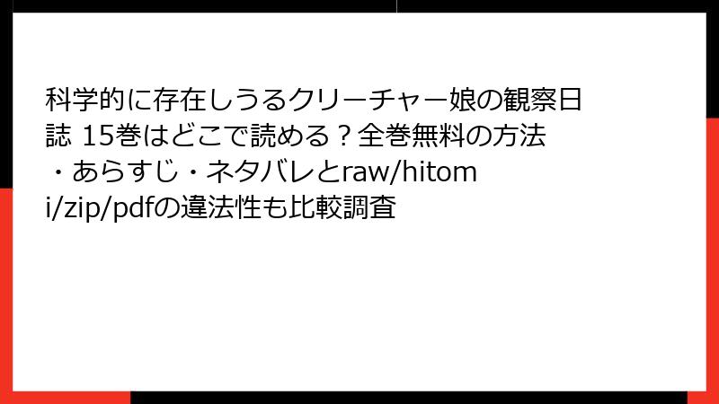 - 『科学的に存在しうるクリーチャー娘の観察日誌』を海賊版(raw・hitomi・漫画バンクなどで読むのは絶対やめよう!徹底的なリスク解説