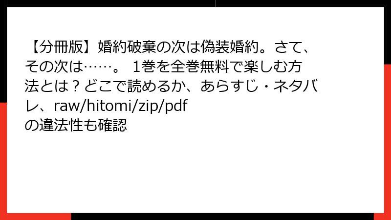 【分冊版】婚約破棄の次は偽装婚約。さて、その次は……。 を raw・hitomi・漫画バンクなどで読むと、本当にヤバい理由を全部書く