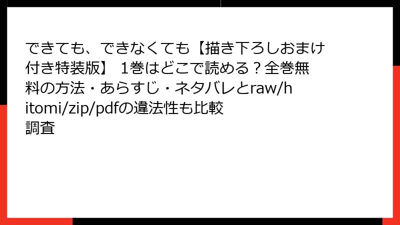 できても、できなくても【描き下ろしおまけ付き特装版】 1巻はどこで読める?全巻無料の方法・あらすじ・ネタバレとraw/hitomi/zip/pdfの違法性も比較調査