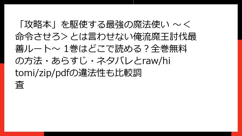 3. 【超危険】「攻略本」を駆使する最強の魔法使い ~<命令させろ>とは言わせない俺流魔王討伐最善ルート~ を raw・hitomi・漫画バンク系海賊版サイトで読む本当のリスク完全解説