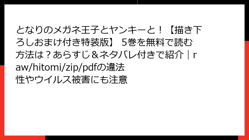 となりのメガネ王子とヤンキーと!【描き下ろしおまけ付き特装版】 5巻を無料で読む方法は?あらすじ&ネタバレ付きで紹介|raw/hitomi/zip/pdfの違法性やウイルス被害にも注意