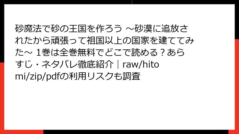 砂魔法で砂の王国を作ろう ~砂漠に追放されたから頑張って祖国以上の国家を建ててみた~ 1巻は全巻無料でどこで読める?あらすじ・ネタバレ徹底紹介|raw/hitomi/zip/pdfの利用リスクも調査