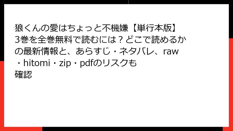 狼くんの愛はちょっと不機嫌【単行本版】 3巻を全巻無料で読むには?どこで読めるかの最新情報と、あらすじ・ネタバレ、raw・hitomi・zip・pdfのリスクも確認