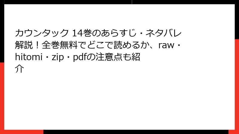 3. カウンタックをraw・hitomi・漫画バンク・zip・pdf海賊版で読むリスク 2025年現在も地獄です