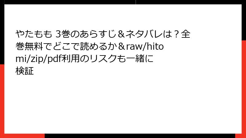 - やたもも 3巻を海賊版サイトで読むリスク