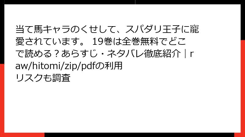 当て馬キャラのくせして、スパダリ王子に寵愛されています。 19巻は全巻無料でどこで読める?あらすじ・ネタバレ徹底紹介|raw/hitomi/zip/pdfの利用リスクも調査