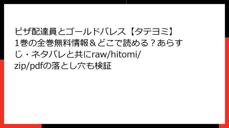 ピザ配達員とゴールドパレス【タテヨミ】 1巻の全巻無料情報&どこで読める?あらすじ・ネタバレと共にraw/hitomi/zip/pdfの落とし穴も検証