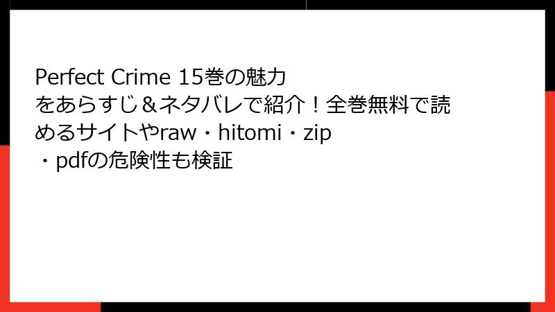 『Perfect Crime』をraw・hitomi・漫画バンクなどで読むと、本当にヤバい理由