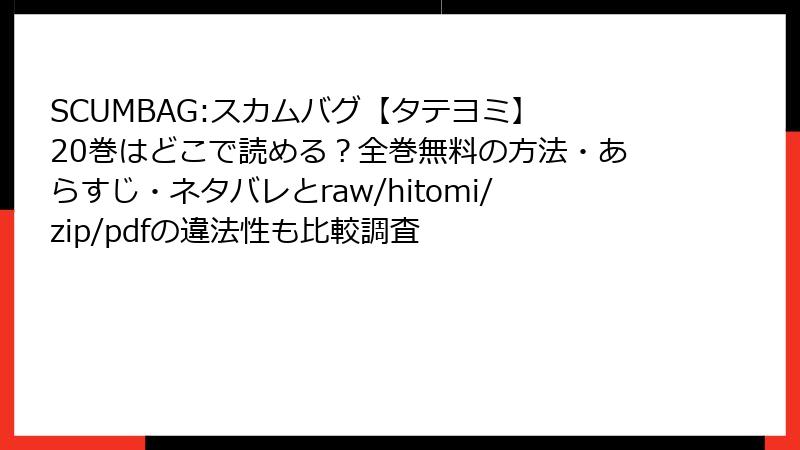 SCUMBAG:スカムバグ【タテヨミ】 20巻はどこで読める?全巻無料の方法・あらすじ・ネタバレとraw/hitomi/zip/pdfの違法性も比較調査