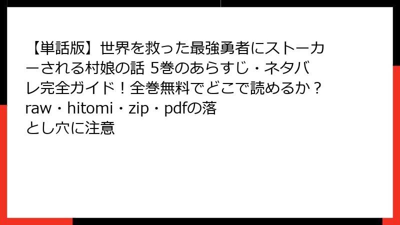 【単話版】世界を救った最強勇者にストーカーされる村娘の話 5巻のあらすじ・ネタバレ完全ガイド!全巻無料でどこで読めるか?raw・hitomi・zip・pdfの落とし穴に注意