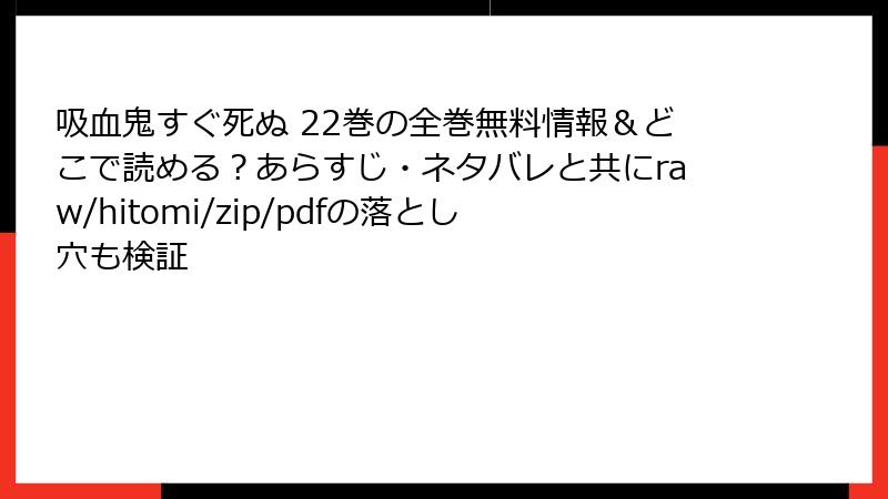 最近また「22巻 raw」「吸死 漫画バンク」「hitomi 吸血鬼すぐ死ぬ」みたいな検索が急増してるみたいですが、正直言って**絶対にやめてください**。