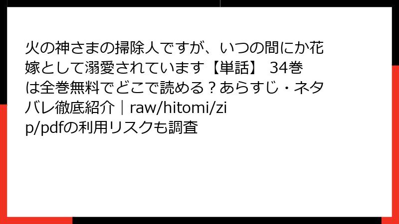 - 『火の神さまの掃除人ですが、いつの間にか花嫁として溺愛されています』をraw・hitomi・漫画バンクなどで読むと、本当にヤバい理由